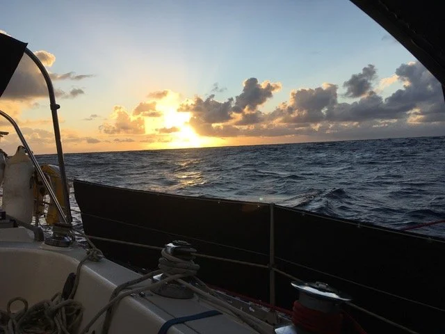 This middle week of this passage has brought a lot of squall activity. The upside is the speeds are high and the daily mileage is racking up, but it takes it’s toll on the crew. We have changed the watch system to ensure that at night there are two people on watch at the same time. We can’t afford to have an accident happen that is caused by fatigue or a badly made decision. Some days are better than others and gradually the squalls go back to being manageable by one person and things start to get back to what is our new normal. As we pass the 1000 miles to go mark on the chart, Ann brought out a bottle of Brandy which we mix with cold Coke and a slice of lemon, to cheer this milestone achievement. Just one.